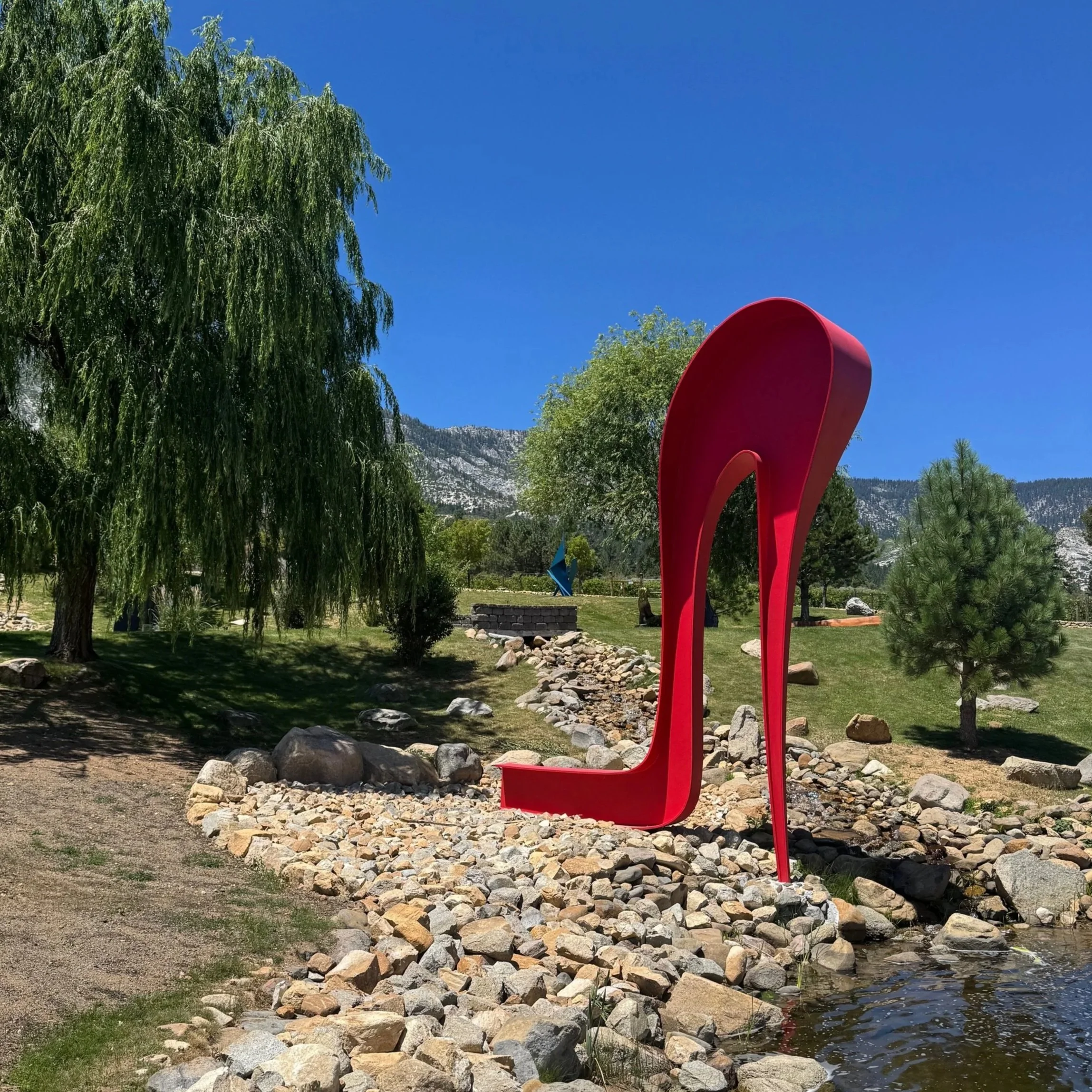 Strength in Drag by Vivian Beer, 2024. Formed, fabricated, and painted steel, 19.' x 4' x 15' long.