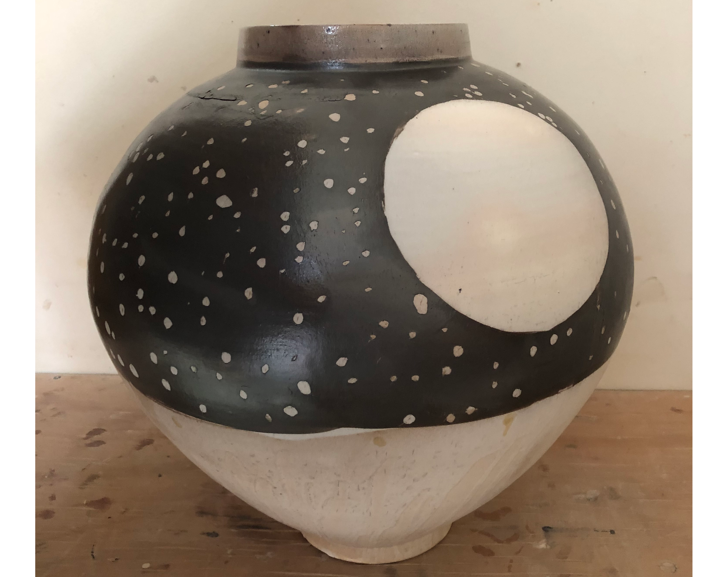 Moon Jar by Christopher Staley, 2025. Stoneware, 21" x 24".