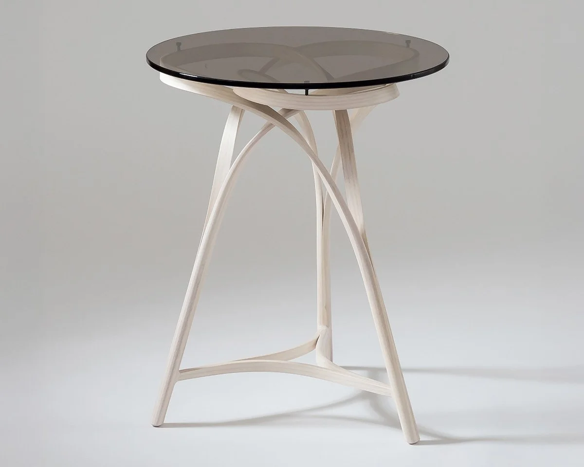 Triumvirate by Yuri Kobayashi, 2017. Ash, tinted glass, steam-bending, 22" x 22" x 25". Photo by Mark Juliana.