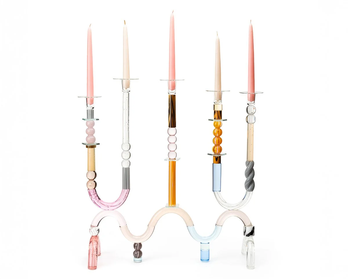 Abacus Candelabra by Christopher Kerr-Ayer, 2021. Manipulated glass, found objects, adhesive, 8" x 30" x 30". Photo by LOAM.
